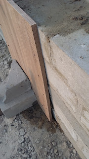 Czpienie szalowaliśmy starymi płytami meblowym, deskami i ogólnie czym się dało. Początkowo w nazwijmy to "prostszych" miejsca wystarczyło płytę przykręcić długimi wkrętami do spoin i podeprzeć bloczkami: